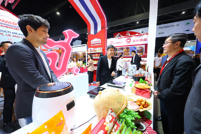 นายจรัสภล รุจิราโสภณ ประธานเจ้าหน้าที่บริหาร ธุรกิจต่างประเทศ บริษัท ส.ขอนแก่นฟู้ดส์ จำกัด (มหาชน) เปิดเผยว่า ส.ขอนแก่น มุ่งมั่นที่จะสร้างสรรค์อาหารไทยให้เข้าถึงวิถีชีวิตของคนยุคปัจจุบันและคนรุ่นใหม่ทั่วโลก สอดคล้องกับพันธกิจ “Wisdom Forward” ด้วยการพัฒนาผลิตภัณฑ์ที่สะท้อนรากฐานของภูมิปัญญาท้องถิ่นผสมผสานกับนวัตกรรมและมาตรฐานการผลิตระดับสากล เพื่อตอบรับไลฟ์สไตล์ของผู้บริโภค ทั้งด้านรสชาติ ความสะดวก และความปลอดภัย โดยปีนี้ ส.ขอนแก่น เข้าร่วม THAIFEX – ANUGA ASIA 2025 งานแสดงสินค้าอาหารและเครื่องดื่มที่ใหญ่และครบวงจรที่สุดในเอเชีย ภายใต้แนวคิด “Forward Thai Cuisine Wisdom to the World” โดยมีความตั้งใจที่จะนำเสนอผลิตภัณฑ์อาหารไทยที่ได้รับการพัฒนาให้ตอบโจทย์ผู้บริโภคสู่ระดับสากล ทั้งในแง่รสชาติแบบไทยแท้และความสะดวกในการบริโภค ซึ่งการเข้าร่วมงานนี้ถือเป็นโอกาสสำคัญในการเปิดตัวนวัตกรรมอาหารไทยสู่ตลาดโลก พร้อมทั้งสร้างการรับรู้แบรนด์ในระดับนานาชาติอย่างต่อเนื่อง