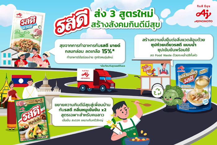 บริษัท อายิโนะโมะโต๊ะ (ประเทศไทย) จำกัด เดินเกมรุกสู่ผู้นำตลาดธุรกิจอาหาร ดัน “รสดี” สู่โซลูชันการปรุงอาหารยุคใหม่ มุ่งยกระดับความ ‘กินดีมีสุข’ เจาะกลุ่มคนรุ่นใหม่ ผู้ประกอบการ และขยายสู่ตลาดประเทศลาว ภายใต้ 3 แกนกลยุทธ์หลัก สุขจากการทำอาหาร – ยั่งยืนต่อสิ่งแวดล้อม – ขยายความกินดีมีสุขสู่เพื่อนบ้าน ด้วยการเปิดตัว 3 สูตรใหม่! “รสดี®มายด์ ผงปรุงรส รสหมู” “ซุปก๋วยเตี๋ยวรสดี แบบน้ำ สูตรซุปกระดูกหมูเคี่ยวนาน” และ “รสดี กลิ่นหมูเข้มข้น X2” สะท้อนความมุ่งมั่นของแบรนด์ในการเป็นผู้นำตลาดผงปรุงรสและแบรนด์อันดับหนึ่งในใจผู้บริโภคจากครัวไทยสู่อาเซียน