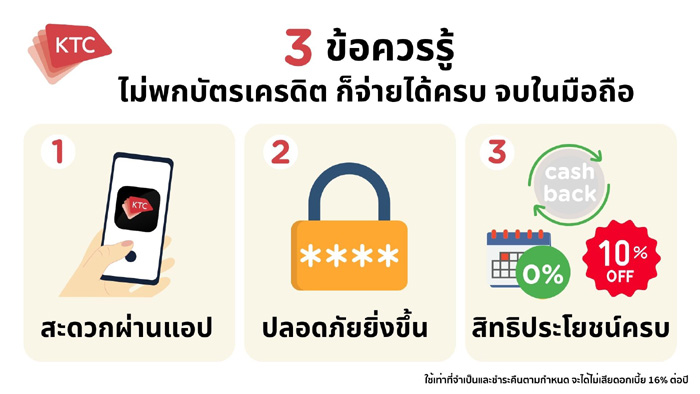 หนึ่งในสถานการณ์ที่ผู้ถือบัตรเครดิตมักพบเจอ คือการลืมนำบัตรติดตัวเมื่อต้องการใช้จ่าย หรือไม่สะดวกพกบัตร หลายใบพร้อมกันแต่สิทธิประโยชน์บางรายการเหมาะกับบัตรที่ไม่ได้นำมา ส่งผลให้พลาดโอกาสในการสะสมคะแนน ส่วนลด หรือโปรโมชันพิเศษต่าง ๆ โดยที่ไม่ทราบว่าเพียงแค่มีโทรศัพท์มือถือก็สามารถใช้งานบัตรเครดิตได้โดยไม่จำเป็นต้องพกบัตรจริง หรือมีความกังวลว่าการชำระเงินจะซับซ้อนและยุ่งยาก เคทีซีจึงได้รวบรวม 3 ข้อควรรู้สำหรับ ผู้ที่มักลืมพกบัตรเครดิต เพื่อให้ไม่พลาดทุกความคุ้มค่าการใช้จ่าย และใช้ชีวิตได้ง่ายขึ้นกว่าที่เคย