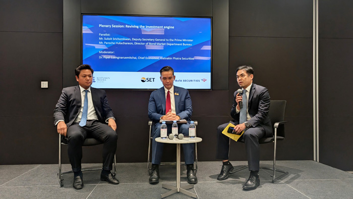 ด้านตลาดหลักทรัพย์แห่งประเทศไทย นายอัสสเดช คงสิริ กรรมการและผู้จัดการ ได้นำเสนอวิสัยทัศน์และแสดงศักยภาพของตลาดทุนไทยภายใต้ความท้าทายจากสภาวะเศรษฐกิจ โดยระบุว่า แม้สภาวะตลาดโลกจะเผชิญแรงกดดันจากเงินเฟ้อ ความไม่แน่นอนทางเศรษฐกิจการค้า และความตึงเครียดทางภูมิรัฐศาสตร์ ตลาดทุนไทยยังคงเป็นที่สนใจของนักลงทุนต่างชาติในฐานะแหล่งลงทุนที่มั่นคงและปลอดภัย