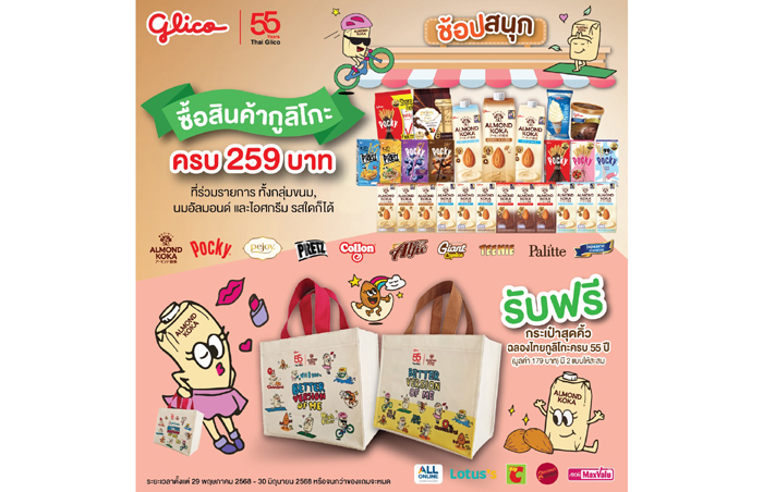 ไทยกูลิโกะ ผู้ผลิตและจัดจำหน่ายผลิตภัณฑ์ยอดนิยม ป๊อกกี้ เพรทซ์ พีจอย แอลฟี่ และโคลลอน ร่วมฉลอง World Milk Day 1 มิ.ย. 2568 ส่ง “กูลิโกะ อัลมอนด์ โคกะ” แบรนด์นมอัลมอนด์ อันดับ 1 ในญี่ปุ่น จัดแคมเปญ กระตุ้นการดื่มนมต่อเนื่อง ปลาย พ.ค. – ส.ค. นี้ หวังเป็นนมทางเลือกใหม่ แก้ปัญหาผู้แพ้นมวัวและน้ำตาลแลคโตส เพิ่มโอกาสคนไทยแข็งแรงสุขภาพดี นำร่องแจกนมอัลมอนด์ทดลองดื่มในซูเปอร์มาร์เก็ต-ไฮเปอร์มาร์เก็ตชั้นนำ-ร้านค้าปลีกทั่วไป รวม 58 แห่งทั่วประเทศ ตั้งแต่วันที่ 30 พ.ค. – 1 มิ.ย.นี้ ตอกย้ำแนวคิด “ดื่มได้ทุกที่ ดูดีทุกวัน” พร้อมจัดเซ็ทพรีเมียม ซื้อสินค้าครบ 259 บาท รับฟรีกระเป๋ากูลิโกะ อัลมอนด์ โคกะ ดีไซน์สุดคิวท์ ลิมิเต็ดฉลองครบรอบ 55 ปี ไทยกูลิโกะ มอบแรงบันดาลใจสร้าง “Better Version of Me”