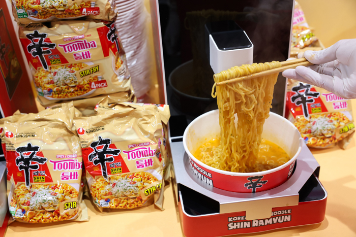 · การเปิดตัวผลิตภัณฑ์ใหม่ล่าสุดจาก Nongshim อย่าง SHIN Ramyun Toomba (ชินรามยอน ทูมบ้า) ให้ชิมเป็นที่แรกในไทย ที่นำเสนอความนุ่มละมุนของครีมและชีสตัดกับรสเผ็ดนิดๆ ได้อย่างลงตัว พร้อมเปิดให้ผู้เข้าชมได้ลองชิมรามยอนรสชาติยอดนิยมอย่าง อย่าง SHIN Ramyun Noodle Soup (ชินรามยอน นู้ดเดิ้ลซุป), Jay Fai SHIN Ramyun Stir Fry Tom Yum Flavour (ชินรามยอน เจ๊ไฝ ต้มยำแห้ง), Spicy Chapagetti (สไปซี่ ชาปาเก็ตตี้) และ SHIN Ramyun Stir Fry Cheese (ชินรามยอน สเทอร์ไฟร์ รสชีส) ซึ่งถือเป็นอีกหนึ่งสีสันสำคัญของบูธในปีนี้