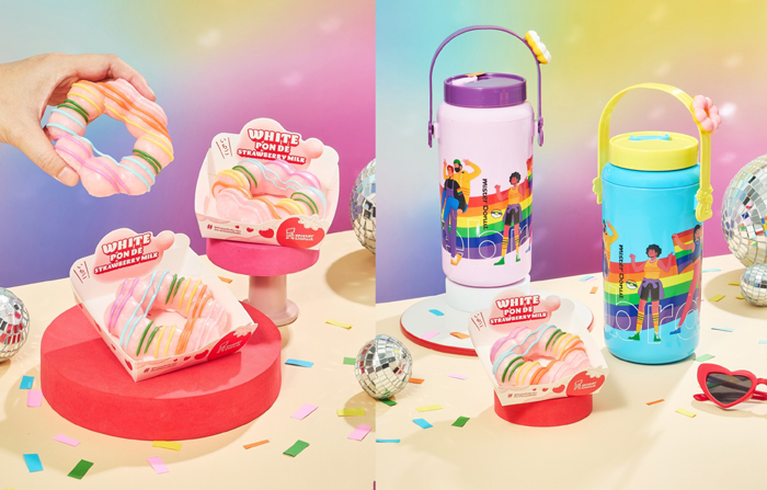 มิสเตอร์ โดนัท (Mister Donut) ขอร่วมเฉลิมฉลองเทศกาล Pride Month ตลอดทั้งเดือนนี้ไปกับทุกคนด้วย Pride White Pon De Strawberry Milk ไวท์พอนเดอริงแป้งนุ่มหนึบ หอมละมุนไปกับกลิ่นนมสตรอว์เบอร์รีที่มาพร้อมสีสันสดใสเสมือนหัวใจที่เปี่ยมไปด้วยความรักอันสดใสและยังสื่อถึงความหลากหลายอีกด้วย ในราคาเพียง 31 บาทเท่านั้น นอกจากนี้มิสเตอร์โดนัทก็ยังมี แก้วน้ำ Happy Pride Month มาช่วยเติมสีสันสดใสให้ในชีวิตประจำวันและสังคมหลากหลายไปด้วยสีสันที่มากมายด้วยความคูลลลซื้อแก้วน้ำ HappyPride Month พร้อมน้ำส้ม พิเศษราคา 99 บาท (จากปกติราคา 139 บาท) มีให้เลือก 2 สี เก็บความเย็นได้ 2-3 ชั่วโมง วางจำหน่ายแล้วตั้งแต่วันที่ 1 มิถุนายน 2568 – 30 มิถุนายน 2568 ที่ร้านมิสเตอร์ โดนัททุกสาขา