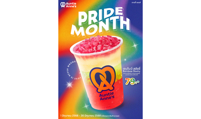 อานตี้ แอนส์ (Auntie Anne’s) ออกเมนูใหม่ที่ได้รับแรงบันดาลใจจากการตระหนักรู้ และส่งเสริมความหลากหลายจนนำไปสู่การออกเมนู Rainbow Slushy เครื่องดื่มน้ำผลไม้เย็นสดชื่นหลากสีสันที่รวมเป็นหนึ่งในแก้วเดียวมีทั้ง สตรอว์เบอรี แอปเปิลเขียว เลม่อน และเบอร์รีเจลลี หลากหลายสีสันและรสชาติ เพื่อสื่อถึงความหลากหลายและความเท่าเทียมในสังคมที่รวมกันเป็นหนึ่งมาร่วมเติมความสดชื่นในเดือน Pride Month ไปด้วยกันได้แล้วตั้งแต่วันที่ 1 มิถุนายน 2568 – 30 มิถุนายน 2568 ที่ร้านอานตี้ แอนส์ทุกสาขา