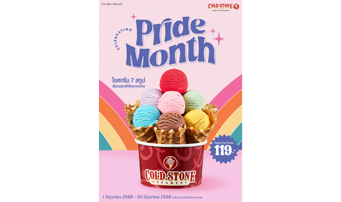 โคล สโตน ครีมเมอรี่ (Cold Stone Creamery) ร่วมแสดงจุดยืนในการส่งเสริมความหลากหลายในสังคมจนนำมาสู่การออกแบบเมนู Taste The Pride Ice Cream เมนูไอศกรีมระดับซูเปอร์ พรีเมียมหลากสีสันและหลายรสชาติถึง 7 สกู๊ปเลือกรสชาติหลากหลายได้ในถ้วยเดียว เสิร์ฟพร้อมถ้วยวาฟเฟิล หอม ๆ กรอบอร่อยไว้ทานคู่กัน ในราคา 119.- มาร่วมเฉลิมฉลอง Pride Month ไปกับโคล สโตน ครีมเมอรี่ได้แล้วตั้งแต่วันที่ 1 มิถุนายน 2568 – 30 มิถุนายน 2568 ที่ร้านโคล สโตน ครีมเมอรี่ทุกสาขา