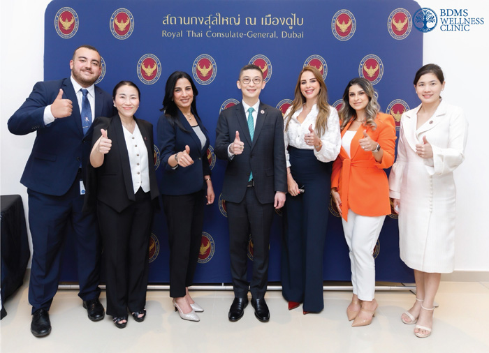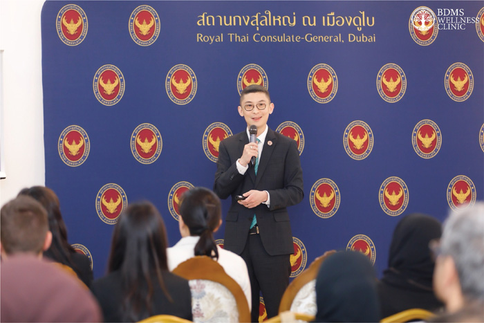 เดินหน้าสานต่อภารกิจสร้างสุขภาพระดับโลกไทย-ดูไบ! นายแพทย์ตนุพล วิรุฬหการุญ หรือ คุณหมอแอมป์ ประธานคณะผู้บริหาร บีดีเอ็มเอส เวลเนส คลินิก และบีดีเอ็มเอส เวลเนส รีสอร์ท บริษัท กรุงเทพดุสิตเวชการ จำกัด (มหาชน) ได้รับเกียรติจาก สถานกงสุลใหญ่ ณ เมืองดูไบ สหรัฐอาหรับเอมิเรตส์ เป็นตัวแทนประเทศไทย เข้าร่วมบรรยายถ่ายทอดความรู้ด้านการดูแลสุขภาพเชิงป้องกัน ภายใต้หัวข้อ “Wellness Hub Thailand: The Future of Global Wellness” มุ่งเน้นการสร้างสุขภาพที่ดีระดับโลกสอดคล้องกับแผน Dubai Health Strategy 2026 ที่มุ่งยกระดับมาตรฐานการดูแลสุขภาพและส่งเสริมการดูแลสุขภาพเชิงป้องกันในสหรัฐอาหรับเอมิเรตส์ ปักหมุดประเทศไทยเป็นจุดหมายปลายทางด้านการส่งเสริมสุขภาพระดับสากล โดยได้รับเกียรติจากนางสาวนิภา นิรันดร์นุตกงสุลใหญ่ สถานกงสุลใหญ่ ณ เมืองดูไบ สหรัฐอาหรับเอมิเรตส์ ให้การต้อนรับ พร้อมแขกผู้มีเกียรติจากสหรัฐอาหรับเอมิเรตส์เข้าร่วมงาน