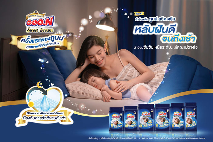 นายอะสึชิ คุริฮาระ เสริมต่ออีกว่า เราเข้าใจ Pain Point ของคุณพ่อคุณแม่ยุคใหม่ GOO.N จึงได้ตระหนักดีถึงความกังวลของคุณพ่อคุณแม่ที่ต้องตื่นกลางดึกเพื่อเปลี่ยนผ้าอ้อมให้ลูก เพราะความรู้สึกอับชื้นของผ้าอ้อมทั่วไป GOO.N Sweet Dream จึงถูกออกแบบมาให้ “ไม่ต้องเลือก” ระหว่าง “นุ่ม” หรือ “ซึมซับดี” แต่ให้ทั้งสองคุณสมบัติในหนึ่งเดียว เพื่อให้ทั้งลูกน้อยและคุณแม่ได้นอนหลับอย่างมีคุณภาพ