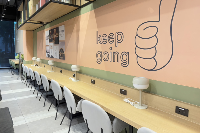 นอกจากนี้ยังเพิ่มพื้นที่ Co-Living ที่เปิดโอกาสให้ลูกค้าใช้เป็นพื้นที่นัดหมายกลุ่มย่อย หรือประชุมงานแบบไม่เป็นทางการได้อย่างสะดวก พร้อมตกแต่งในโทนสีสดใส ทันสมัย ผสมผสานงานดีไซน์กลิ่นอายโมเดิร์นที่สะท้อนตัวตนของกลุ่ม Gen Z และ First Jobber ได้อย่างชัดเจน โดยเลือกใช้เฟอร์นิเจอร์ไม้ให้ความรู้สึกผ่อนคลาย สบายตา และน้ำหนักเบา สามารถเคลื่อนย้ายปรับเปลี่ยนได้ง่าย พร้อมจัดวางโต๊ะ-เก้าอี้แบบยืดหยุ่น รองรับการใช้งานที่หลากหลาย พร้อมกันนี้ยังมีมุม Bar Connect เป็นพื้นที่นั่งแบบสตูบาร์สูงติดกับเคาน์เตอร์ครัวกลางร้าน ให้ลูกค้าสามารถนั่งดื่มเครื่องดื่มโปรด อีกทั้งมุมนี้ยังออกแบบให้เป็นมุมสำหรับถ่ายภาพลงโซเชียลได้ ช่วยเสริมภาพลักษณ์แบรนด์ให้ตอบโจทย์ไลฟ์สไตล์คนรุ่นใหม่อย่างแท้จริง โดยตั้งเป้าให้สาขานี้เป็นแลนด์มาร์กคาเฟ่ของนิวเจน เพื่อสร้างยอดขายและขยายฐานสมาชิกใหม่ ๆ ให้มีสัดส่วนลูกค้าคนไทย 40% ต่างชาติ 60% ตามแผนที่วางไว้
