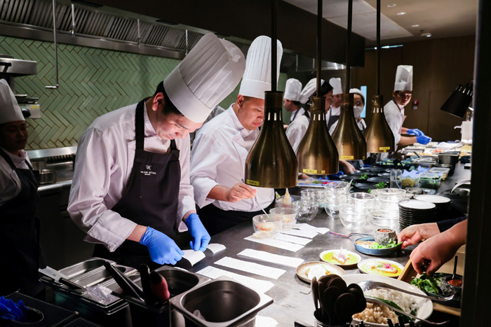 ttb reserve มอบประสบการณ์สุดพิเศษเพื่อลูกค้าคนสำคัญอีกครั้ง กับค่ำคืนแห่งการลิ้มรสที่ร้อยเรียงความละเมียดละไมของศิลปะการปรุงอาหารไทยร่วมสมัยผ่านทุกจานอาหารที่รังสรรค์ขึ้นอย่างพิถีพิถัน ไฮไลต์ของค่ำคืนนี้ คือ เชฟหวาย – สาละ ศักดาเดช เชฟและเจ้าของร้าน “รสิก โลคอล คิทเช่น” ร้านอาหารยอดนิยมจองยากจากเชียงใหม่ที่ครองรางวัล Bib Gourmand จากมิชลิน ไกด์ ประเทศไทยประจำปีล่าสุด กับการเดินทางนำความอร่อยระดับตำนานมาให้ได้สัมผัสถึงใจกลางกรุงเทพฯ มาร่วมรังสรรค์เมนูพิเศษเคียงข้าง เชฟอ้น – อธิติ ม่วงทอง หัวหน้าทีมห้องอาหาร Front Room แห่งโรงแรมหรู Waldorf Astoria Bangkok ซึ่งขึ้นชื่อในด้านการปรุงอาหารไทยร่วมสมัยด้วยเทคนิคอันปราณีต ผสานเอกลักษณ์ของวัตถุดิบพื้นถิ่นตามฤดูกาลเข้ากับวิธีการปรุงที่ลึกซึ้งในรายละเอียดทุกขั้นตอน เปรียบเสมือนบทสนทนาระหว่างรสชาติ สัมผัส และเรื่องราวของวัตถุดิบไทยที่ได้รับการถ่ายทอดผ่านมุมมองร่วมสมัย โดยสองเชฟมากฝีมือที่พร้อมพาลูกค้าคนสำคัญของ ttb reserve มาเปิดประสบการณ์ใหม่แห่งการรับประทานอาหารมื้อพิเศษ