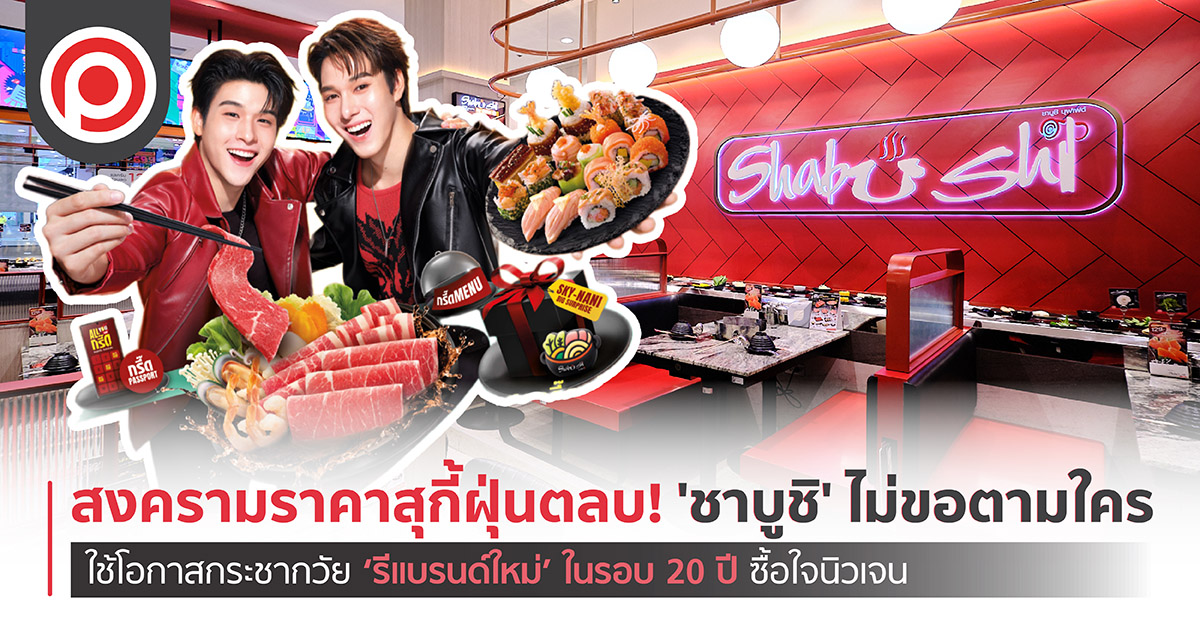 ในช่วงที่ตลาด ชาบู สุกี้ กำลังดุเดือดด้วย สงครามราคา ของ 2 แบรนด์ในตลาดอย่าง MK สุกี้ และ สุกี้ตี๋น้อย ที่ฝั่งหนึ่งก็เริ่มทำโปรบุฟเฟต์ อีกฝั่งก็ดัมพ์ราคาลงมา แต่ ชาบูชิ หนึ่งในพี่ใหญ่ที่อยู่ในตลาดมานาน ขอไม่ร่วมวงเล่นในเกมนี้ แต่ใช้โอกาสฝุ่นตลบ รีแบรนด์ใหม่ กระชากวัยในรอบ 20 ปี