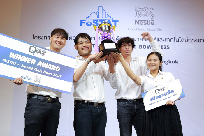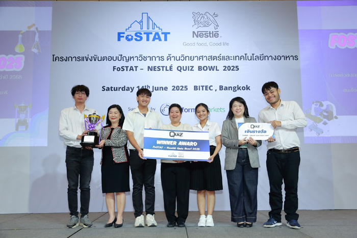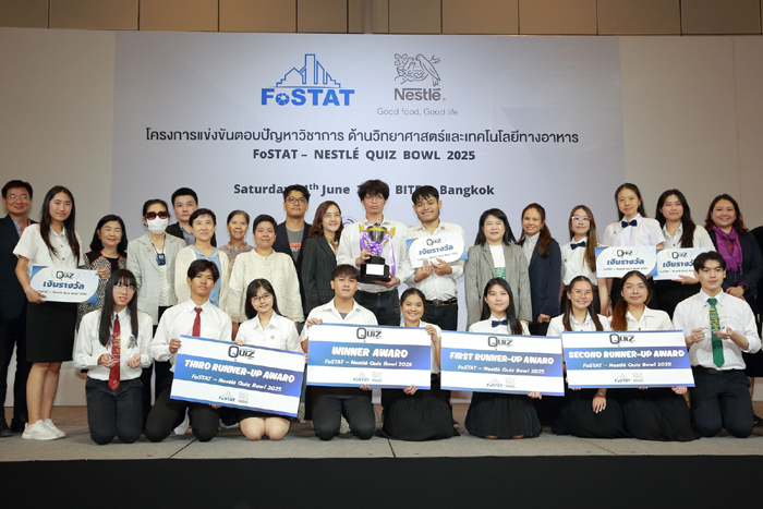บริษัท เนสท์เล่ (ไทย) จำกัด สานต่อความมุ่งมั่นในการส่งเสริมศักยภาพเยาวชนไทยในด้านวิทยาศาสตร์อาหาร ผ่านความร่วมมือกับสมาคมวิทยาศาสตร์และเทคโนโลยีทางอาหารแห่งประเทศไทย (FoSTAT) ในการจัดการแข่งขันตอบปัญหาวิชาการด้านวิทยาศาสตร์และเทคโนโลยีทางอาหารระดับประเทศ “FoSTAT – Nestlé Quiz Bowl” ติดต่อกันเป็นครั้งที่ 21 เวทีประลองความรู้นี้ ตั้งเป้าหมายให้นักศึกษาจากทั่วประเทศได้แสดงทักษะความรู้นอกห้องเรียน พร้อมเพิ่มพูนประสบการณ์เกี่ยวกับอุตสาหกรรมอาหาร เพื่อเตรียมความพร้อมสู่โลกแห่งการทำงานในอนาคต
