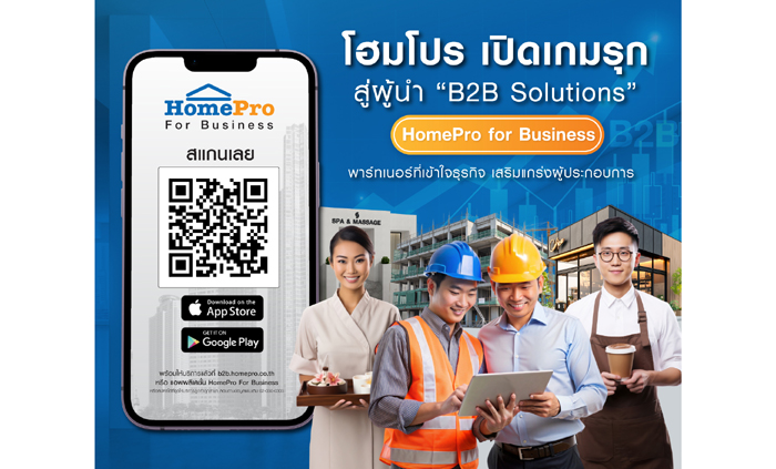 โฮมโปร เปิดตัวแพลตฟอร์มใหม่ “HomePro for Business” รุกตลาดธุรกิจ B2B ครอบคลุมกว่า 11 กลุ่มธุรกิจ ภายใต้แนวคิด “มากกว่าร้านค้า คือ พาร์ทเนอร์ที่ร่วมขับเคลื่อนความสำเร็จของธุรกิจ” มุ่งส่งมอบโซลูชันครบวงจร ด้วยประสบการณ์ในธุรกิจค้าปลีกสินค้าและบริการเรื่องบ้านมาเกือบ 30 ปี ด้วยสินค้ากว่า 75,000 SKU และบริการอย่างมืออาชีพ พร้อมสาขาและพาร์ตเนอร์ที่ครอบคลุมทั่วประเทศ ที่เข้าถึงง่าย สะดวก ส่งไว และให้สิทธิประโยชน์มากมาย ช่วยให้ผู้ประกอบการบริหารต้นทุนสินค้าได้อย่างมีประสิทธิภาพ และเติบโตอย่างมั่นคง