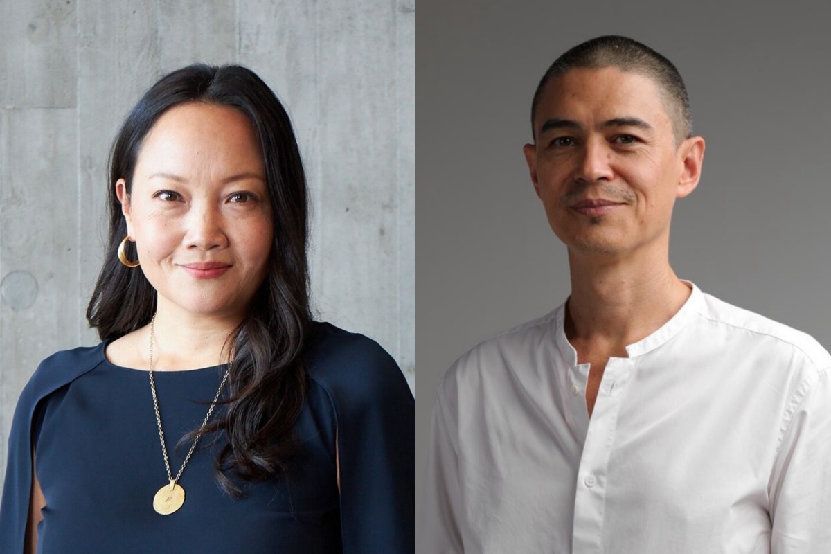 (ภาพซ้าย) ดร. มิกะ โยชิตาเกะ (Dr. Mika Yoshitake) ภัณฑารักษ์อาวุโสจาก Blum Gallery ลอสแอนเจลิส สหรัฐอเมริกา และ ดร. เดวิด เทห์ (Dr. David Teh) ภัณฑารักษ์ นักเขียน นักวิชาการ รองศาสตราจารย์