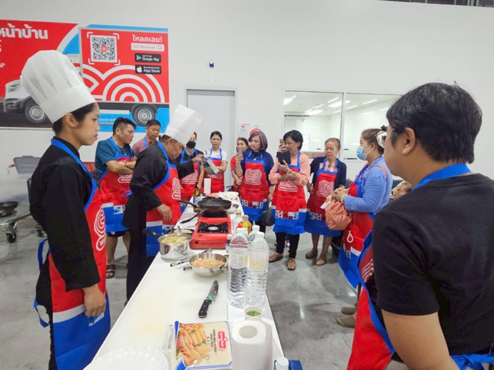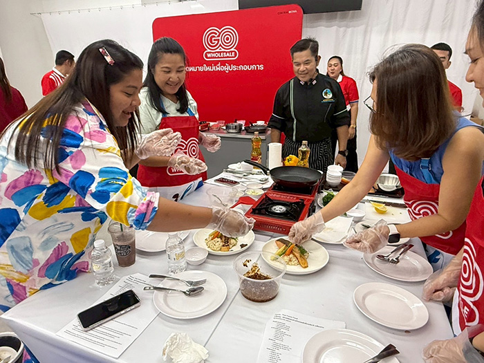 สำหรับหลักสูตรเวิร์กชอปนี้ “โก โฮลเซลล์” ใช้การวิเคราะห์ข้อมูลความต้องการของลูกค้า และความนิยมของวัตถุดิบอาหารแต่ละชนิด ก่อนสร้างสรรค์ออกมาเป็นธีมอาหารหลักๆ อาทิ ไทยฟิวชั่นฟู้ด ครบเครื่องเรื่องเส้นเส้น จากนั้นจะให้ทีมเชฟมืออาชีพของสมาคมฯ ระดมสมอง คิดเมนูที่ช่วยจุดประกายให้ผู้ประกอบการนำไปต่อยอดธุรกิจของตนเองได้ ไม่ว่าจะเป็น ปลาแซลมอนย่างซอสสไปซี่เทอริยากิเครื่องลาบ ปอเปี๊ยะปลาแซลมอน ฟิเลย์มิยองผัดกะเพรา กุ้งลายเสือใหญ่เทอร์มิดอร์ซอส เสิร์ฟพร้อมเส้นแองเจิลแฮร์หมึกดำ ฯลฯ เปิดสอนแบบเอ็กซ์คลูซีฟ ครั้งละ 30 คน ทุกคนได้ลงมือทดลองปรุงอาหารด้วยตนเอง ซึ่งเชฟจะสอนและให้คำแนะนำอย่างใกล้ชิด
