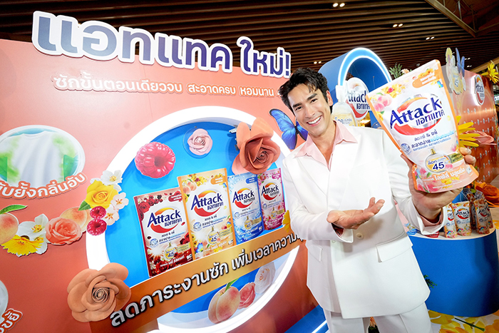 บริษัท คาโอ อินดัสเตรียล (ประเทศไทย) จำกัด ผู้ผลิตและจำหน่ายสินค้าอุปโภคและเคมีภัณฑ์ชั้นนำ โดยแบรนด์ผลิตภัณฑ์ซักผ้า “แอทแทค” เปิดตัวผลิตภัณฑ์ใหม่ล่าสุด ชูนวัตกรรมใหม่ด้วยเทคโนโลยีแคปซูลน้ำหอม “ยิ่งขยับ ยิ่งหอม” ซักขั้นตอนเดียวจบ สะอาดครบ หอมนาน 45 วัน ไม่ต้องแช่ ไม่ต้องขยี้ ล็อกกลิ่นหอมติดผ้ายาวนาน ตอกย้ำจุดยืนความเป็นตัวช่วยคู่ใจตอบโจทย์ไลฟ์สไตล์สำหรับคุณแม่และครอบครัวยุคใหม่ พร้อมเปิดตัวพรีเซนเตอร์คนใหม่ล่าสุด “ณเดชน์ คูกิมิยะ”