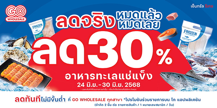 เศรษฐกิจไม่สู้ดี แต่ยังมีโอกาสดีๆ ของผู้ประกอบการร้านอาหารที่ต้องการวัตถุดิบคุณภาพราคาสุดคุ้มรออยู่ !!! เพราะ โก โฮลเซลล์ (GO WHOLESALE) ศูนย์ค้าส่งวัตถุดิบอาหาร ที่มีความสดใหม่ตลอดเวลาเพื่อผู้ประกอบการ ภายใต้การดำเนินงานของ บริษัท เซ็นทรัล ฟู้ด โฮลเซลล์ จำกัด ในเครือเซ็นทรัล รีเทล จัดโปรโมชั่นสุดช็อกกลางปี ด้วยการขนทัพสินค้าอาหารทะเลแช่แข็งคุณภาพดี มาลดราคา 30% เพื่อช่วยผู้ประกอบการร้านอาหาร โชห่วย ธุรกิจโฮเรก้า ลดต้นทุน เพิ่มโอกาสสร้างกำไร ประคองธุรกิจให้อยู่รอดได้ โดยโปรแกรมลดราคาสุดว้าวนี้ มีตั้งแต่วันนี้ – 30 มิถุนายน 2568 ที่ โก โฮลเซลล์ ทุกสาขาทั่วประเทศ และในแอปพลิเคชัน GO WHOLESALE