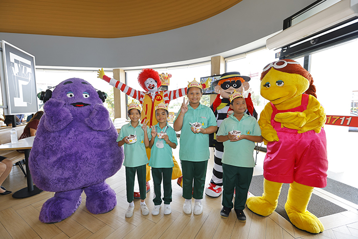 สำหรับโครงการพัฒนาสังคม ‘McHappy Smile’ ออกแบบมาเพื่อมอบประสบการณ์ความสุขแบบครบวงจร และสร้างความประทับใจให้กับน้องๆ โดยไม่เพียงแต่เน้นเรื่องความสนุกสนานเท่านั้น แต่ยังรวมถึงการเปิดโลกทัศน์ให้เด็กๆ ได้สัมผัสกับการบริการมาตรฐานระดับโลกของแมคโดนัลด์อย่างใกล้ชิด เริ่มตั้งแต่ โชว์แบบเพลินๆ (Play+Learn) จากพี่โรนัลด์และผองเพื่อน ที่สอดแทรกความรู้ในการดูแลตัวเองออกกำลังกายอย่างเหมาะสม นอกจากนั้นน้องๆ ในโครงการจะได้เปิดโลกผ่านทัวร์ร้านแมคโดนัลด์ เพื่อช่วยฝึกทักษะและสร้างเสริมประสบการณ์ชีวิตผ่านการเรียนรู้นอกห้องเรียนจากบรรยากาศการทำงานหน้าร้านจริง ตั้งแต่จุดสั่งซื้อสินค้าหน้าเคาน์เตอร์ การบริการเครื่องสั่งอาหารอัตโนมัติ สาธิตการทำงานในห้องครัว รวมถึงการบริการของแมคไดรฟ์ทรู เพื่อเรียนรู้การทำงานเป็นทีม และการส่งมอบความสุขผ่านบริการที่รวดเร็วและมีประสิทธิภาพ นอกจากนั้นน้องๆ ยังได้มีช่วงเวลาสุดพิเศษกับ ‘Birthday Party’ เพื่อให้น้องๆ ได้ร่วมฉลองช่วงเวลาแห่งความสุขร่วมกันผ่านเมนูอาหารกลางวันที่จัดเตรียมอย่างพิถีพิถัน ภายใต้มาตรฐานความปลอดภัยและคุณภาพระดับโลกของแมคโดนัลด์ เป็นการเติมเต็มรอยยิ้มและความทรงจำดีๆ ให้กับเด็กๆ