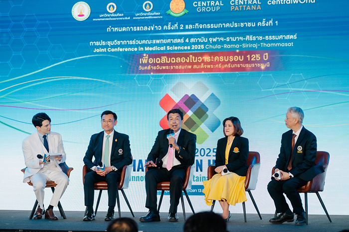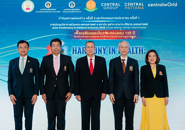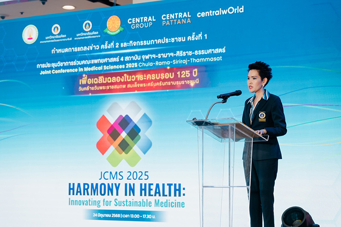 คณะแพทยศาสตร์ 4 สถาบันชั้นนำของประเทศไทย ผนึกกำลังจัดงาน แถลงข่าวครั้งที่ 2 และกิจกรรมภาคประชาชนครั้งที่ 1 ในการประชุมวิชาการร่วมคณะแพทยศาสตร์ 4 สถาบัน พ.ศ. 2568 : ระหว่างคณะแพทยศาสตร์ จุฬาลงกรณ์มหาวิทยาลัย คณะแพทยศาสตร์โรงพยาบาลรามาธิบดี มหาวิทยาลัยมหิดล, คณะแพทยศาสตร์ศิริราชพยาบาล มหาวิทยาลัยมหิดล และคณะแพทยศาสตร์ มหาวิทยาลัยธรรมศาสตร์ ภายใต้หัวข้อ JCMS 2025: Harmony in Health – Innovating for Sustainable Medicine เพื่อแบ่งปันวิสัยทัศน์ และร่วมกันสะท้อนแนวทางความร่วมมือในการส่งเสริมสุขภาพของประชาชน ผ่านพลังของวิชาการจากทั้ง 4 สถาบันแพทยศาสตร์ และร่วมเฉลิมฉลองในวาระครบรอบ 125 ปี วันคล้ายวันพระราชสมภพสมเด็จพระศรีนครินทราบรมราชชนนี ในส่วนของกิจกรรมภาคประชาชน จัดขึ้นเพื่อส่งเสริมให้ประชาชนทั่วไปได้มีโอกาสเข้าถึงองค์ความรู้พื้นฐานทางการแพทย์ที่ถูกต้อง เชื่อถือได้ และเหมาะสมกับการนำไปใช้ในชีวิตประจำวัน โดยมีจุดมุ่งหมายเพื่อ ยกระดับความรู้ด้านสุขภาพของประชาชน อย่างรอบด้าน ผ่านกิจกรรมที่ทั้งให้สาระและสร้างประสบการณ์จริง เช่น การตรวจสุขภาพเบื้องต้น การให้คำแนะนำโดยบุคลากรทางการแพทย์ และการนำเสนอผลงานวิชาการในรูปแบบที่เข้าใจง่าย ซึ่งงานจัดขึ้น ณ บริเวณชั้น 1 โซนอีเดน ศูนย์การค้าเซ็นทรัลเวิลด์ โดยมี อาร์ม-กรกันต์ สุทธิโกเศศ รับหน้าที่พิธีกร