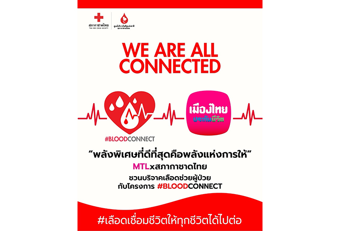 บริษัท เมืองไทยประกันชีวิต จำกัด (มหาชน) ร่วมปลุกพลังแห่งการให้ ส่งต่อความห่วงใยให้ทุกชีวิตได้ไปต่อ ผ่านโครงการ #BLOODCONNECT – พลังพิเศษที่ดีที่สุดคือพลังแห่งการให้ จับมือ 3 องค์กรสำคัญ ศูนย์บริการโลหิตแห่งชาติ สภากาชาดไทย สมาคมการตลาดแห่งประเทศไทย (MAT) และสมาคมโฆษณาแห่งประเทศไทย (AAT) ชวนคนไทยร่วมบริจาคโลหิตช่วยเหลือผู้ป่วยที่ต้องการโลหิตในการรักษา เพราะทุกหยดโลหิต คือพลังชีวิตที่ช่วยให้ ผู้ป่วย “ได้ไปต่อ”