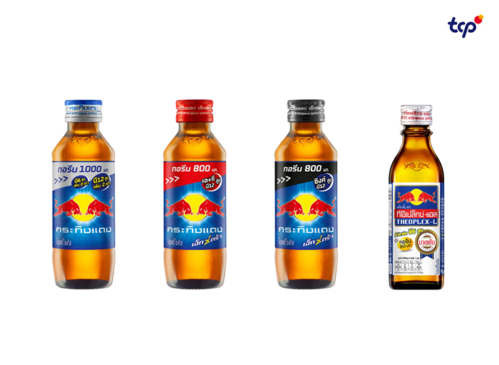 • ทีโอเปล็กซ์ – แอล : เครื่องดื่มให้พลังงานรุ่นแรกของกระทิงแดง มีวิตามินบี 6 สูง มีส่วนช่วยในการสร้างเม็ดเลือดแดงตามปกติ มีทอรีน 850 มก.
