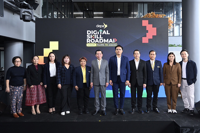 ผศ.ดร.ณัฐพล นิมมานพัชรินทร์ ผู้อำนวยการใหญ่ สำนักงานส่งเสริมเศรษฐกิจดิจิทัล หรือ ดีป้า แถลงกรอบแนวทางการพัฒนาทักษะดิจิทัลสำหรับคนไทย (Digital Skill Roadmap) โดยได้รับเกียรติจากผู้บริหารเครือข่ายพันธมิตรภาครัฐ ภาคเอกชน สถาบันการศึกษาร่วมงานโดยพร้อมเพรียง ณ อาคาร ดีป้า (สำนักงานใหญ่) ซอยลาดพร้าว 10 พร้อมบรรยายพิเศษในหัวข้อ ‘Digital Skill Roadmap คนไทยเรียน ประเทศไทยรอด’ โดยระบุว่า การพัฒนากำลังคนและบุคลากรดิจิทัลของประเทศคือหนึ่งในภารกิจสำคัญที่ ดีป้า ดำเนินการมาอย่างต่อเนื่อง โดยบูรณาการการทำงานกับเครือข่ายพันธมิตร เพื่อส่งเสริมให้คนไทยทุกกลุ่มและทุกช่วงวัยเรียนรู้และประยุกต์ใช้ดิจิทัลได้เกิดประโยชน์สูงที่สุด