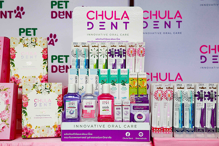 ดร.กรรณิการ์ ชินประสิทธิ์ชัย ประธานเจ้าหน้าที่การตลาด บริษัท ซี.ยู.เดนท์ อินโนเวชั่น จำกัด กล่าวว่า “จากแบรนด์ CUDENT ที่เปิดตัวในระยะแรก เราได้ปรับแบรนด์ใหม่เป็น Chula Dent เพื่อเน้นย้ำจุดแข็งด้านงานวิจัยและเผยแพร่สินค้านวัตกรรมด้วยคุณภาพจากผลงานคณะทันตแพทยศาสตร์ จุฬาฯ ด้วยผลิตภัณฑ์ในกลุ่ม Chula Dent อาทิ ยาสีฟันสูตร Cooling Peppermint, สเปรย์ระงับกลิ่นปาก และน้ำยาบ้วนปาก Trehalose ถูกออกแบบมาเพื่อรองรับปัญหาช่องปากที่พบได้บ่อยในกลุ่มผู้สูงอายุ ผู้มีภาวะปากแห้ง หรือผู้ป่วยหลังการรักษามะเร็งบริเวณศีรษะและลำคอ พร้อมเปิดตัวแบรนด์ใหม่ Pet Denta เพื่อตอบโจทย์การดูแลสุขภาพช่องปากสัตว์เลี้ยงในปี 2568 ปัจจุบันสินค้าเพื่อสุขภาพช่องปาก 6 หมวดหมู่ ได้แก่ ยาสีฟัน แปรงสีฟัน น้ำยาบ้วนปาก สเปรย์ระงับกลิ่นปาก ไหมขัดฟัน และยาสีฟันสำหรับสัตว์เลี้ยง โดยรวมแล้วมีสินค้าทั้งสิ้น 13 รายการ และขยายช่องทางจำหน่ายผ่านทั้งออนไลน์ ออฟไลน์ และ KTC U SHOP” ผู้สนใจสุขภาพช่องปาก สามารถรับรายละเอียดเพิ่มเติมได้ที่ https://www.facebook.com/Chuladent