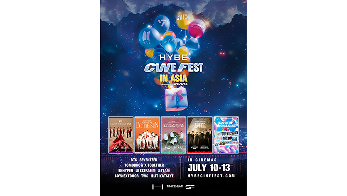 โรงภาพยนตร์ในเครือ เอส เอฟ ร่วมกับ HYBE และ Trafalgar เตรียมระเบิดความมันส์ครั้งแรกในประเทศไทยและในเอเชียกับ “HYBE CINE FEST IN ASIA” พบกับภาพยนตร์คอนเสิร์ต 5 เรื่อง จากศิลปิน เค-ป๊อป ระดับโลกภายใต้สังกัด HYBE อาทิ BTS, SEVENTEEN, TOMORROW X TOGETHER, ENHYPEN และอีกมากมาย รับชมพร้อมกันบนจอยักษ์ภาพคมชัดระดับ 4K ที่โรงภาพยนตร์ในเครือ เอส เอฟ 30 สาขาทั่วประเทศ ในราคาเริ่มต้นที่นั่งละ 350 บาท ระหว่างวันที่ 10 – 13 กรกฎาคม 2568
