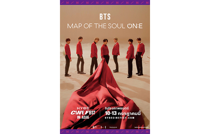 “HYBE CINE FEST” จัดขึ้นครั้งแรกในแถบละตินอเมริกาเมื่อปี 2024 มีผู้เข้าชมกว่า 260,000 คน ในเกือบ 500 โรงภาพยนตร์ และในปี 2025 ครั้งแรกในเอเชียและในประเทศไทยกับ “HYBE CINE FEST IN ASIA” พร้อม 9 ประเทศ อาทิ ญี่ปุ่น, อินเดีย, มาเลเซีย, เกาหลีใต้, ฟิลิปปินส์, ไต้หวัน, ฮ่องกง, อินโดนีเซีย และ สิงคโปร์ นอกจากภาพยนตร์คอนเสิร์ตจากวง เค-ป๊อป ระดับโลก ทั้ง 5 เรื่อง แฟนๆ จะได้พบกับ HYBE CINE FEST EXHIBITION จุดถ่ายภาพ และกิจกรรมเซอร์ไพรส์อื่น ๆ ที่โรงภาพยนตร์เอส เอฟ เวิลด์ ซีเนม่า ศูนย์การค้าเซ็นทรัลเวิลด์ ระหว่าง วันที่ 10 – 13 กรกฎาคม 2568
