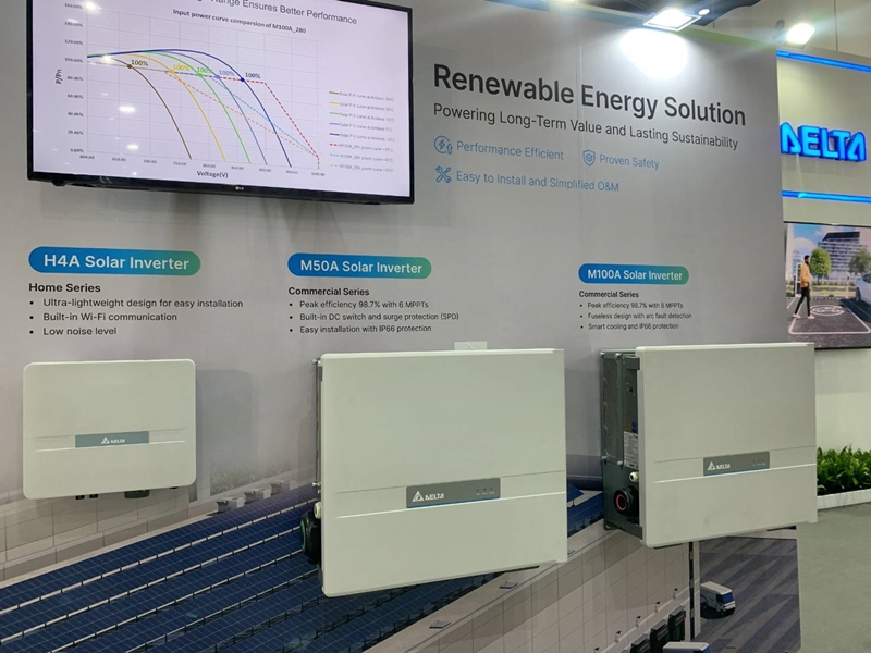 อินเวอร์เตอร์ PV ประสิทธิภาพสูงของเดลต้ารองรับการติดตั้งระบบโซลาร์เซลล์ได้ทุกขนาด ตั้งแต่หลังคาบ้านไปจนถึงอาคารพาณิชย์ขนาดใหญ่ อินเวอร์เตอร์ H4A 4kW ขนาดกะทัดรัดมอบประสิทธิภาพที่เชื่อถือได้สำหรับบ้านและธุรกิจ SMEs ในขณะที่อินเวอร์เตอร์รุ่น M50 และ M100 แบบสามเฟสเหมาะสำหรับโรงงานและคลังสินค้าที่มีขนาดใหญ่ มาพร้อมระบบติดตามทางไกล ระบบวิเคราะห์สถานะแบบอัจฉริยะ และยังสามารถเชื่อมต่อได้กับระบบจัดเก็บไฟฟ้าและระบบชาร์จ EV เพื่อให้ได้ผลผลิตพลังงานและการควบคุมระบบที่มีประสิทธิภาพสูงสุด
