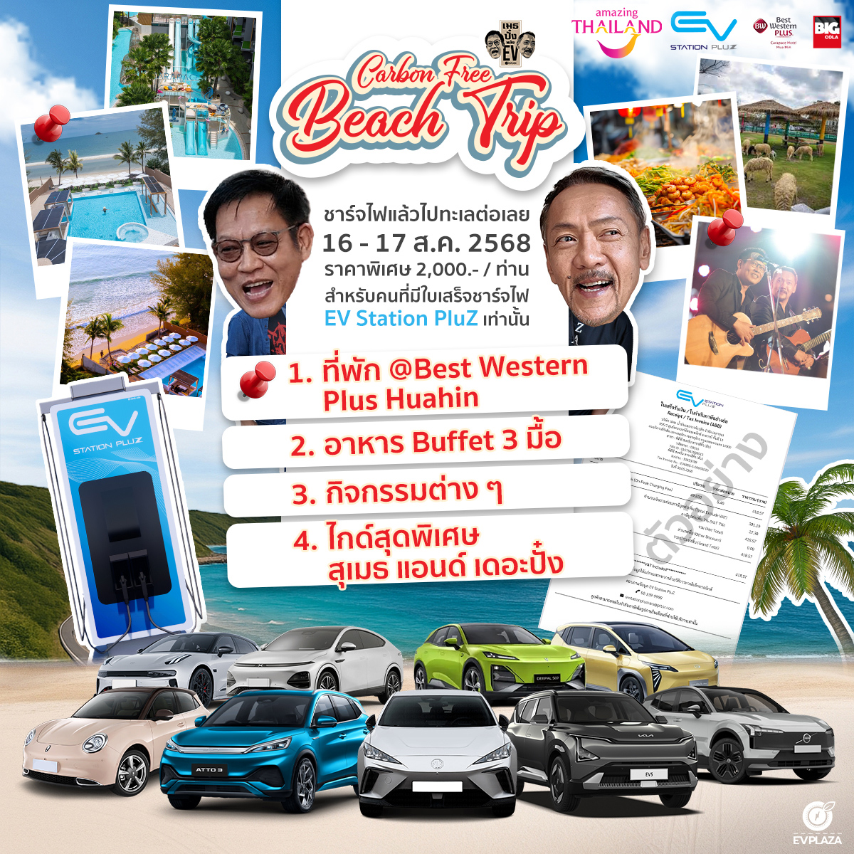 ไม่ต้องรอลุ้นสิทธิ์เที่ยวไทยคนละครึ่ง มาทริปกับเรา คุ้มยิ่งกว่าคุ้ม! EV Plaza จัดกิจกรรม Carbon Free Beach Trip ร่วมกับ การท่องเที่ยวแห่งประเทศไทย, EV Station PluZ และ Big Cola ขับรถ EV คู่ใจ เส้นทางกรุงเทพฯ – ชะอำ 2 วัน 1 คืน สนุกกับกิจกรรมแรลลี่ด้วยศิลปินสุดฮาเรียกสียงหัวเราะตลอดทริป สุเมธ องอาจ และ ปั๋ง ประกาศิต พร้อมกับแขกับเชิญในวงการรถยนต์ไฟฟ้าที่คุ้นตา คุณเอ๋ เพจ เล่าเรื่องรถ, ติ่ง เพจ TiY และ คุณเอ เพจ EV Cars Thailand