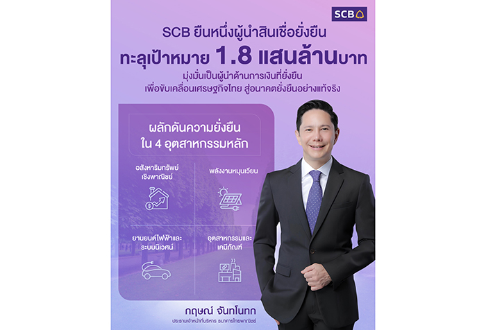 ไทยพาณิชย์ประกาศความสำเร็จสนับสนุนการเงินยั่งยืนทะลุเป้าหมาย ทะยานสู่ 1.8 แสนล้านบาทในช่วง 2 ปีครึ่ง หนุนภาคธุรกิจไทยเปลี่ยนผ่านสู่สังคมคาร์บอนต่ำอย่างยั่งยืน