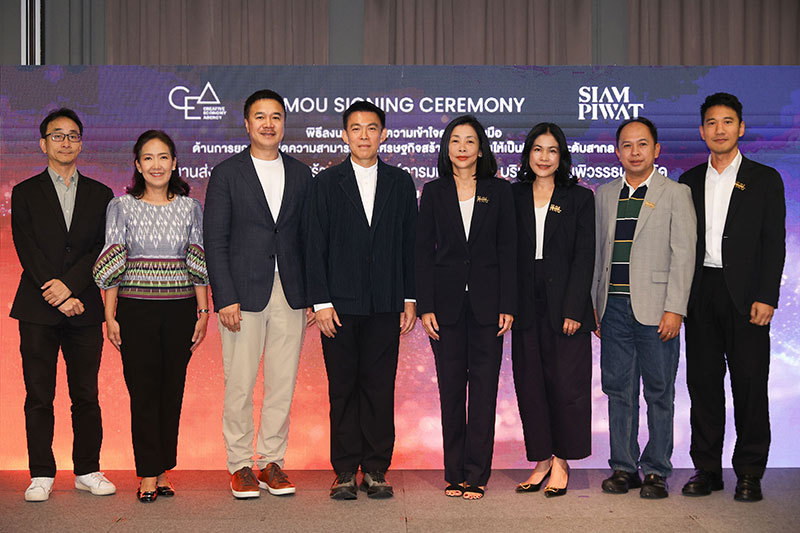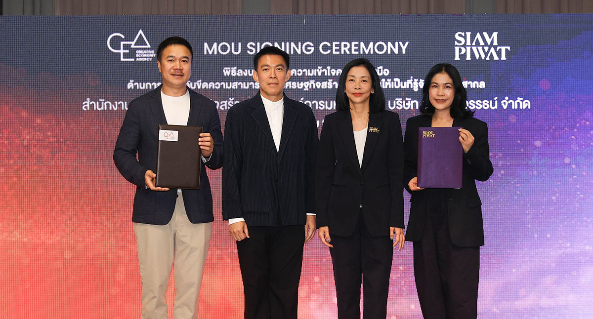 สำนักงานส่งเสริมเศรษฐกิจสร้างสรรค์ (องค์การมหาชน) หรือ CEA ผนึกความร่วมมือกับ บริษัท สยามพิวรรธน์ จำกัด ผู้พัฒนาอสังหาริมทรัพย์และธุรกิจค้าปลีกชั้นนำ ในพิธีลงนามบันทึกความเข้าใจความร่วมมือ (MOU) เพื่อยกระดับขีดคามสามารถของเศรษฐกิจสร้างสรรค์และวัฒนธรรมไทยสู่ระดับสากล โดยมีเป้าหมายร่วมกันในการขยายโอกาสให้ผู้ประกอบการและนักสร้างสรรค์ไทยได้แสดงศักยภาพบนเวทีโลก ผ่านการจัดแสดงผลงานและสินค้าสร้างสรรค์ในพื้นที่เชิงพาณิชย์และกิจกรรมต่าง ๆ พร้อมทั้งสนับสนุนการบ่มเพาะองค์ความรู้ และการพัฒนาศักยภาพเพื่อต่อยอดทางธุรกิจ ผลักดันประเทศไทยก้าวสู่การเป็น ‘Creative Nation’ สร้างรายได้และขับเคลื่อนเศรษฐกิจของประเทศ