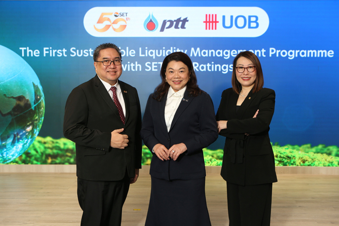 ธนาคารยูโอบี ประเทศไทย ประกาศเปิดตัวโครงการบริหารสภาพคล่องเพื่อความยั่งยืน (Sustainable Liquidity Management Programme) ซึ่งนับเป็นโครงการแรกของประเทศไทย ที่เชื่อมโยงการบริหารสภาพคล่องขององค์กรเข้ากับผลการดำเนินงานด้านสิ่งแวดล้อม สังคม และธรรมาภิบาล (ESG) โดยใช้ผลประเมินหุ้นยั่งยืนของตลาดหลักทรัพย์แห่งประเทศไทย (SET ESG Ratings) เป็นตัวชี้วัดหลัก ทั้งนี้ บริษัท ปตท. จำกัด (มหาชน) ซึ่งเป็นรัฐวิสาหกิจด้านพลังงานของประเทศ เป็นองค์กรแรกที่เข้าร่วมโครงการดังกล่าว