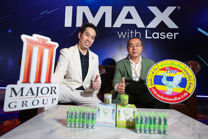 นรุตม์ เจียรสนอง รองประธานเจ้าหน้าที่บริหารฝ่ายการตลาด บริษัท เมเจอร์ ซีนีเพล็กซ์ กรุ้ป จำกัด (มหาชน) ผนึกความร่วมมือ ธีระพงศ์ ระบือธรรม ประธานบริหาร บริษัท สมุนไพรไทย หงส์ไทย จำกัด ผู้ผลิตและจัดจำหน่ายยาดมหงส์ไทย นำผลิตภัณฑ์สมุนไพรไทยแบรนด์ “หงส์ไทย” เผยแพร่ความเป็นไทยผ่านสื่อโฆษณาในโรงภาพยนตร์ IMAX with Laser ด้วยระบบเครื่องฉายที่ทันสมัยและดีที่สุดในโลก เพื่อสร้างประสบการณ์การรับชมภาพยนตร์โฆษณาบนจอภาพยนตร์ยักษ์ พร้อมให้ภาพและเสียงที่คมชัดยิ่งกว่าและกระหึ่มรอบทิศทางเหนือกว่าระบบฉายอื่น ๆ