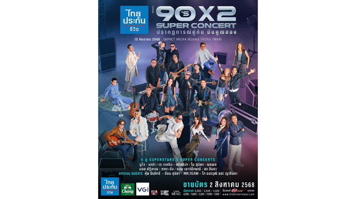 เตรียมตัวให้พร้อม เพราะนี่ไม่ใช่แค่คอนเสิร์ต แต่พร้อมนำคุณไปสัมผัสกับห้วงเวลาแห่งความสุข ความทรงจำ และความมันแบบไม่มียั้ง กับ “ไทยประกันชีวิต presents 90’s x 2 SUPER CONCERT ปรากฏการณ์คู่กัน มันคูณสอง” การรวมตัวครั้งประวัติศาสตร์ของเหล่าศิลปินคู่ขวัญและตัวท็อประดับตำนานแห่งยุค 90’s ที่จะมาสร้างสรรค์ค่ำคืนสุดพิเศษที่ยิ่งใหญ่ที่สุดแห่งปี 2568 ในวันเสาร์ที่ 13 กันยายน 2568 ณ อิมแพ็ค อารีน่า เมืองทองธานี โดยทีมผู้จัดงานมืออาชีพอย่าง “IDEA FACT” หน่วยงานภายใต้ “GMM SHOW” ที่จะกลับมาสร้างความประทับใจ อีกครั้ง