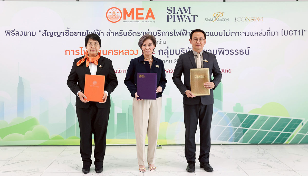 นางอัมพร โชติรัชสกุล กรรมการผู้จัดการใหญ่ บริษัท สยามพิวรรธน์ จำกัด กล่าวว่า “กลุ่มสยามพิวรรธน์มุ่งมั่นในการสร้างความเป็นเลิศในการบริหารจัดการอย่างยั่งยืนในทุกมิติ เราให้ความสำคัญกับการประหยัดพลังงานและการใช้พลังงานหมุนเวียนในการดำเนินธุรกิจ ที่ผ่านมาเราได้ติดตั้งแผงโซล่าเซลล์บนหลังคาอาคารศูนย์การค้าอย่างต่อเนื่อง ล่าสุดเราได้รับการจัดสรรไฟฟ้าจากโครงการ UGT ของ กฟน. ซึ่งเป็นการให้บริการพลังงานไฟฟ้าจากพลังงานหมุนเวียน พร้อมใบรับรองเครดิตการผลิตไฟฟ้าจากพลังงานหมุนเวียน โดยจะเริ่มใช้ตั้งแต่เดือนกรกฎาคม 2025 ความร่วมมือในครั้งนี้ถือเป็นก้าวสำคัญที่จะปักหมุดให้ศูนย์การค้าของกลุ่มสยามพิวรรธน์ พร้อมเดินหน้าสู่เป้าหมายการใช้พลังงานหมุนเวียน 100% ในการดำเนินงานทั้งหมดขององค์กร ภายในปี 2030 ตอกย้ำวิสัยทัศน์การเป็นผู้นำในการพัฒนาโกลบอลเดสติเนชั่นอย่างยั่งยืนโดยแท้จริง”