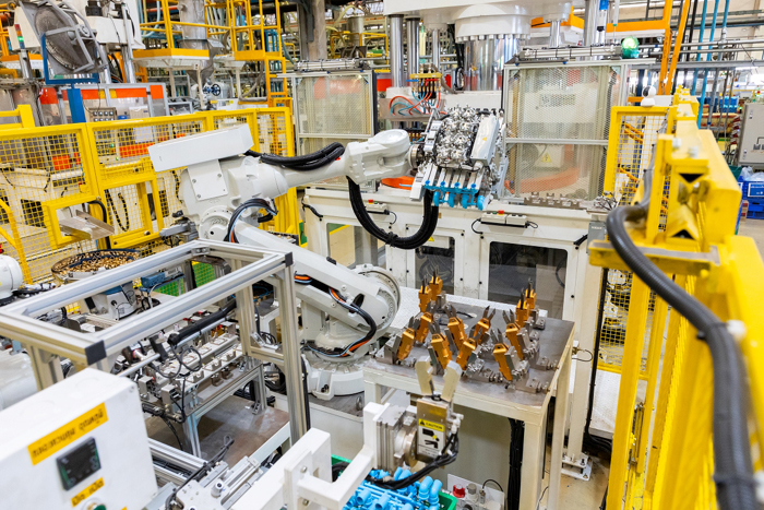 2) การเพิ่มประสิทธิภาพการจัดการโรงงานด้วยเทคโนโลยีดิจิทัล เช่น AI (Artificial Intelligence) และระบบ Robotics & Automation เพื่อเพิ่มประสิทธิภาพการผลิต (Productivity) และยกระดับความปลอดภัยในโรงงาน นอกจากนี้ ยังสามารถช่วยคาดการณ์อนาคตของเครื่องจักรในกระบวนการผลิตได้อย่างแม่นยำ ซึ่งเทคโนโลยีเหล่านี้ถูกออกแบบให้สอดคล้องกับเครื่องจักรและกระบวนการผลิตเฉพาะของแต่ละโรงงานเช่น ระบบ Robotics & Automation ของโรงงานนวพลาสติกอุตสาหกรรม ซึ่งผลิตท่อและข้อต่อ PVC รวมไปถึงผลิตภัณฑ์สำเร็จรูปจาก PVC โดยมีสัดส่วนการนำหุ่นยนต์มาใช้ภายในโรงงาน (Robot Density) ระดับ Best in Classของโลก