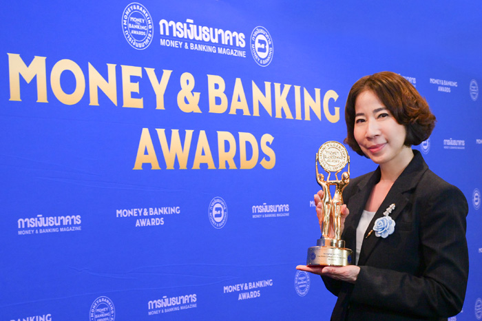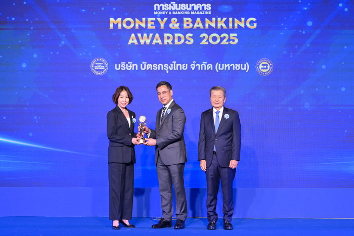 นางพิทยา วรปัญญาสกุล ประธานเจ้าหน้าที่บริหาร “เคทีซี” หรือ บริษัท บัตรกรุงไทย จำกัด (มหาชน) ขึ้นรับรางวัล “บริษัทยอดเยี่ยมแห่งปี 2568” ในหมวดธุรกิจเงินทุนและหลักทรัพย์ (Best Public Company of the Year 2025 – FIN Sector) จากดร.เศรษฐพุฒิ สุทธิวาทนฤพุฒิ ผู้ว่าการธนาคารแห่งประเทศไทย โดยมีนายสันติ วิริยะรังสฤษฎ์ ประธานบรรณาธิการ วารสารการเงินธนาคาร ร่วมแสดงความยินดี ในงาน Money & Banking Awards 2025 ซึ่งจัดโดยวารสารการเงินธนาคาร ณ โรงแรมไฮแอท รีเจนซี่ กรุงเทพฯ สุขุมวิท