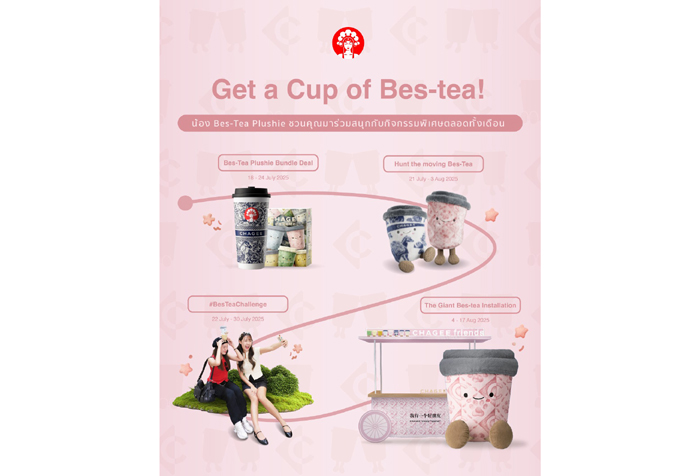 ความพิเศษของ CHAGEE Bes-tea Plushie คือการนำเมนูชาสุดฮิตของ CHAGEE ไม่ว่าจะเป็น BO·YA Jasmine Green Milk Tea และ Peach Oolong Milk Tea มาแปลงร่างเป็นเพื่อนคู่ใจน่ารักนุ่มนิ่มชวนหยุมทั้งแก้ว โดยแต่ละตัวมาพร้อมเรื่องราว บุคลิกเฉพาะตัว และบัตรประจำตัว เซอร์ไพรส์กว่าเพราะมาในรูปแบบกล่องสุ่ม ให้ได้ลุ้นแบบใจเต้นทุกครั้งที่แกะกล่อง มีให้สะสมถึง 8 แบบ จะเอาไปเติมเต็มบรรยากาศได้ทุกที่ เป็นของขวัญให้เพื่อน หรือฟินทั้งวันพกติดตัวทุกเวลา น้องๆ CHAGEE Bes-tea Plushie พร้อมโดนจุ่มเป็นเจ้าของแล้วตั้งแต่วันที่ 18 กรกฎาคมนี้