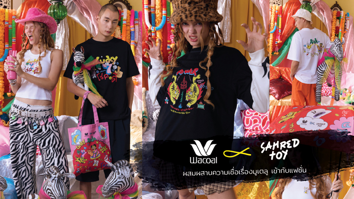 Wacoal X Sahred Toy คอลเลกชันที่ผสมผสานเอกลักษณ์ไทยเข้ากับแฟชั่นยุคปัจุบัน ผ่านแรงบันดาลใจจากลายสักยันต์หรือ “ยันต์มงคล” ที่ถูกออกแบบให้ทันสมัยแต่ยังคงความขลังตามสไตล์ Sahred Toy ใน 3 ดีไซน์ ได้แก่ ดีไซน์ RICH ร่ำรวย ลายยันต์โภคทรัพย์ ให้พุทธคุณด้านส่งเสริมด้านโภคทรัพย์ ช่วยเรียกเงินทองให้ไหลมาเทมา, LUCKY โชคลาภ ลายยันต์ห้าแถว ให้พุทธคุณแคล้วคลาดจากภยันตรายทั้งหลาย ที่มีทั้งโภคทรัพย์ มีเสน่ห์ เมตตามหานิยม, POWER พลังอำนาจ ลายยันต์เสือคู่ ให้พุทธคุณด้านมหาอำนาจความคงกระพัน โดยคอลเลกชัน Wacoal X Sahred Toy ลิมิเต็ดอิดิชั่น ประกอบด้วย เสื้อทีเชิ๊ต (Free Size) รูปแบบ Unisex เสื้อกล้ามมีบรา ในตัว กระเป๋าผ้า ร่มกันแดดกันฝน และ Griptok