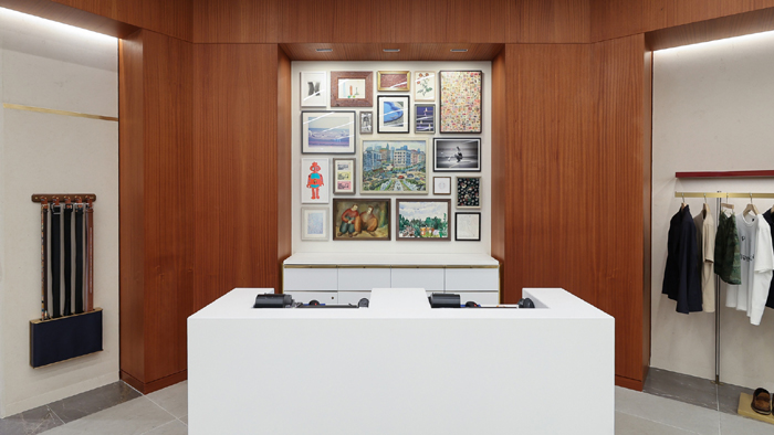 ด้านเฟอร์นิเจอร์ภายในร้านได้ผสมผสานเฟอร์นิเจอร์วินเทจสั่งทำพิเศษเข้ากับงานออกแบบร่วมสมัยอย่างลงตัว อาทิ เก้าอี้เลานจ์วินเทจจากอิตาลียุค 1970 ที่หุ้มด้วยผ้าจากคอลเลกชัน Paul Smith Maharam และโต๊ะจัดแสดงกลางร้านซึ่งออกแบบโดย Renato Zevi นอกจากนี้ ยังโดดเด่นด้วยบริเวณ Paul Smith art walls แสดงผลงานศิลปะที่สะท้อนตัวตนของแบรนด์ ไม่ว่าจะเป็นภาพวาดโดยศิลปินชาวอังกฤษ Nigel O’Neil หรือโปสเตอร์นิทรรศการของ Pablo Picasso ซึ่งช่วยหลอมรวมโลกของแฟชั่นและศิลปะให้เป็นหนึ่งเดียว มอบประสบการณ์การช้อปปิ้งในรูปแบบใหม่ที่ยังไม่เคยมีมาก่อน