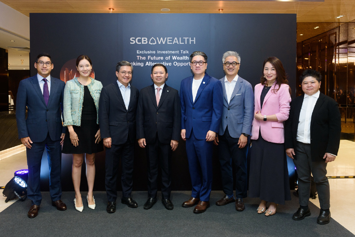 SCB WEALTH จัดสัมมนาภายใต้แนวคิด The Future of Wealth : Unlocking Alternative Opportunities ให้กับกลุ่มลูกค้าเวลธ์ เพื่อถ่ายทอดมุมมองและเจาะลึกโอกาสการลงทุนในสินทรัพย์ทางเลือกใน Private Asset ,Private Equity และ Hedge Fund ล้วนเป็นเครื่องมือสำคัญในการสร้างผลตอบแทนที่โดดเด่นท่ามกลางสภาวะเศรษฐกิจโลกที่ยังเผชิญความผันผวนจากปัจจัยหลากหลาย โดยได้รับเกียรติจากผู้เชี่ยวชาญกองทุนระดับโลกมาร่วมบรรยาย ได้แก่ นางสาวซันนี่ ยุน (ที่2ซ้าย) หัวหน้าฝ่ายไพรเวท เวลธ์ ประจำภูมิภาคเอเชียตะวันออกเฉียงใต้และเกาหลี บริษัท Partners Group สิงคโปร์ ,นายเอ็ดวิน ชาน (ที่ 3 ซ้าย) กรรมการผู้จัดการ หัวหน้าฝ่ายโซลูชั่นสำหรับลูกค้า ประจำภูมิภาคเอเชียแปซิฟิก บริษัท iCapital ,นายยอด ชินสุภัคกุล (ที่ 5 ซ้าย) ประธานเจ้าหน้าที่บริหาร LINE MAN Wongnai ,นายหลิง กว๊อก (ที่ 6 ซ้าย) หุ้นส่วนและประธานเจ้าหน้าที่การลงทุน (CIO) บริษัท Quantum GBL Asset Management และนางสาวซาแมนธา หลิน (ที่ 7 ซ้าย),CFA , ผู้อำนวยการฝ่ายการลงทุนทางเลือก บริษัท Franklin Templeton Core Asia โดยมีนายศรชัย สุเนต์ตา (ที่ 4 ซ้าย),CFA รองผู้จัดการใหญ่ ผู้บริหารสายงาน Wealth & Investment Product กลุ่มธุรกิจ Consumer Banking ธนาคารไทยพาณิชย์, นายแพททริก ปูเลีย (ที่ 1 ซ้าย) รองผู้จัดการใหญ่ ผู้บริหารสายงานตลาดการเงิน และ Head of Private Banking Relationship Management ธนาคารไทยพาณิชย์ และนางสาวศลิษา หาญพานิช (ที่ 8 ซ้าย) ผู้ช่วยผู้จัดการใหญ่ High Net Worth and Affluent Segment และรักษาการผู้ช่วยผู้จัดการใหญ่ Wealth and Insurance Capability Development ธนาคารไทยพาณิชย์ ให้การต้อนรับ เมื่อเร็วๆนี้ ณ โรงแรม ไฮแอท รีเจนซี่ กรุงเทพฯ