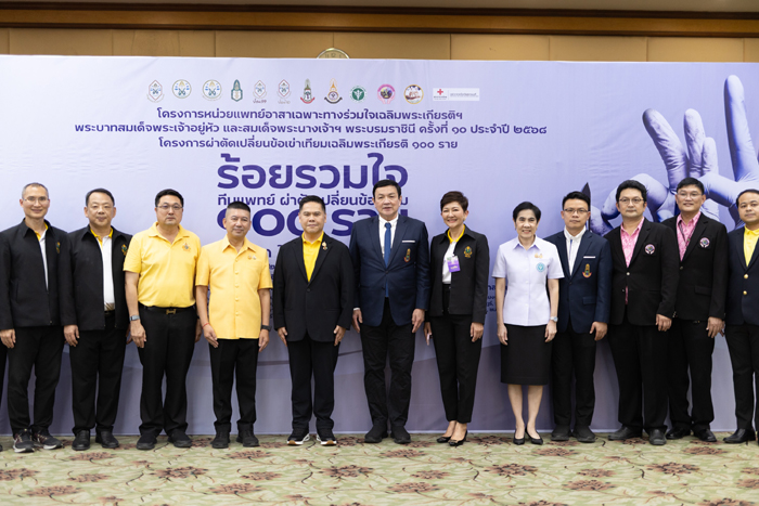 วงการแพทย์ไทยสร้างประวัติศาสตร์หน้าใหม่ ด้วยความร่วมมือครั้งยิ่งใหญ่จาก 38 หน่วยงานทางการแพทย์ทั่วประเทศ ภายใต้ “โครงการหน่วยแพทย์อาสาเฉพาะทางร่วมใจเฉลิมพระเกียรติฯ ครั้งที่ 10 ประจำปี 2568” เพื่อผ่าตัดเปลี่ยนข้อเข่าเทียมให้กับผู้ป่วยกว่า 100 ราย รวมกว่า 164 เข่า โดยไม่เสียค่าใช้จ่าย ณ โรงพยาบาลเจ้าพระยายมราช จังหวัดสุพรรณบุรี ด้วยความร่วมมือครั้งนี้จากโครงการหน่วยแพทย์อาสาเฉพาะทางร่วมใจเฉลิม พระเกียรติฯ เป็นการรวมพลังครั้งยิ่งใหญ่ของระหว่างมูลนิธิธรรมาภิบาลทางการแพทย์ โรงพยาบาลเจ้าพระยายมราช ร่วมกับแพทย์ออร์โธปิดิกส์และบุคลากรทางการแพทย์จากทั่วประเทศ พร้อมทั้งนักศึกษาหลักสูตรประกาศนียบัตรธรรมา ภิบาลทางการแพทย์สำหรับผู้บริหารระดับสูง รุ่นที่ 11 (ปธพ.11) และนักศึกษาหลักสูตรประกาศนียบัตรผู้นำทางการแพทย์ (ปนพ.2) ที่พร้อมใจกันมาเป็นจิตอาสาภายใต้การดำเนินงานของราชวิทยาลัยออร์โธปิดิกส์ แห่งประเทศไทย ร่วมกับราชวิทยาลัยวิสัญญีแพทย์แห่งประเทศไทย และพันธมิตรทุกภาคส่วน ถือเป็นการสร้างประวัติศาสตร์หน้าใหม่ของวงการแพทย์ไทยที่ได้ “ร้อยรวมใจ” เพื่อสร้างกุศลอันยิ่งใหญ่ร่วมกัน จากทีมแพทย์และสหสาขาวิชาชีพจากโรงเรียนแพทย์ โรงพยาบาลทั้งภาครัฐ และเอกชน เพื่อช่วยเหลือผู้ป่วยโรคข้อเข่าเสื่อมขั้นรุนแรงที่ขาดโอกาสในการเข้ารับการรักษา อาทิ คณะแพทยศาสตร์ศิริราชพยาบาล มหาวิทยาลัยมหิดล, คณะแพทยศาสตร์ มหาวิทยาลัยศรีนครินทรวิโรฒ, ศูนย์การแพทย์กาญจนาภิเษก, รพ.ธรรมศาสตร์เฉลิมพระเกียรติ, รพ.พระมงกุฎเกล้า, รพ.วชิรพยาบาล, รพ.พระนั่งเกล้า, รพ.สมเด็จพระบรมราชเทวี ณ ศรีราชา, รพ.พะเยา, รพ.นครปฐม, รพ.ราชวิถี, รพ.ตำรวจ, รพ.แพร่, รพ.บางสะพาน, รพ.พุทธชินราช, รพ.เมดพาร์ค, รพ.บำรุงราษฎร์, รพ.หนองบัวลำภู, รพ.แหลมฉบัง, รพ.สมเด็จพระสังฆราซองค์ที่ 19 , รพ.อ่างทอง, รพ.ตากสิน, รพ.เสนา, รพ.สงขลานครินทร์, รพ.สุโขทัย, รพ.สมเด็จพระสังฆราชองค์ที่ 17 , รพ.อู่ทอง, รพ.ราชพิพัฒน์, ชมรมวิสัญญีพยาบาล นำคณะแพทย์และบุคลากร จาก 38 หน่วยงาน รวมถึงการสนับสนุนจากภาคเอกชน ร่วมผ่าตัดเปลี่ยนข้อเข่าเทียมให้แก่ผู้ป่วย 100 ราย
