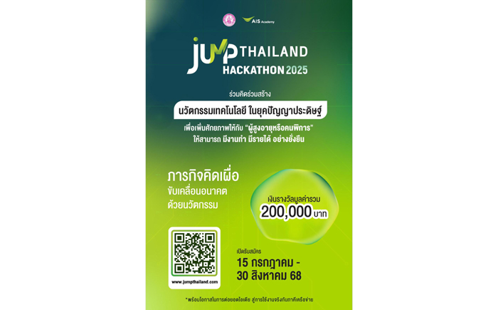 AIS ACADEMY จับมือ กรมกิจการผู้สูงอายุและกรมส่งเสริมและพัฒนาคุณภาพชีวิตคนพิการ ภายใต้ กระทรวงการพัฒนาสังคมและความมั่นคงของมนุษย์ (พม.) เดินหน้าสานต่อพันธกิจเคียงข้างสังคมไทย ผ่านการเปิดตัวโครงการ JUMP THAILAND HACKATHON 2025 ภายใต้แนวคิด “ภารกิจคิดเผื่อ ขับเคลื่อนอนาคตด้วยนวัตกรรม” เชิญชวนนิสิต นักศึกษาทั่วประเทศ ร่วมแสดงศักยภาพด้านเทคโนโลยีและความคิดสร้างสรรค์ ภายใต้โจทย์ “ร่วมคิดร่วมสร้างนวัตกรรมเทคโนโลยีในยุคปัญญาประดิษฐ์เพื่อเพิ่มศักยภาพให้กับผู้สูงอายุหรือคนพิการให้สามารถมีงานทำ มีรายได้ อย่างยั่งยืน” ในการพัฒนาโซลูชันที่ช่วยเพิ่มโอกาสทางอาชีพและรายได้ให้แก่ผู้สูงอายุและคนพิการ เพื่อลดความเหลื่อมล้ำทางสังคม โดยมีผู้เชี่ยวชาญจาก AIS ทำหน้าที่เมนเทอร์ให้คำปรึกษาและถ่ายทอดองค์ความรู้ตลอดระยะเวลาโครงการ
