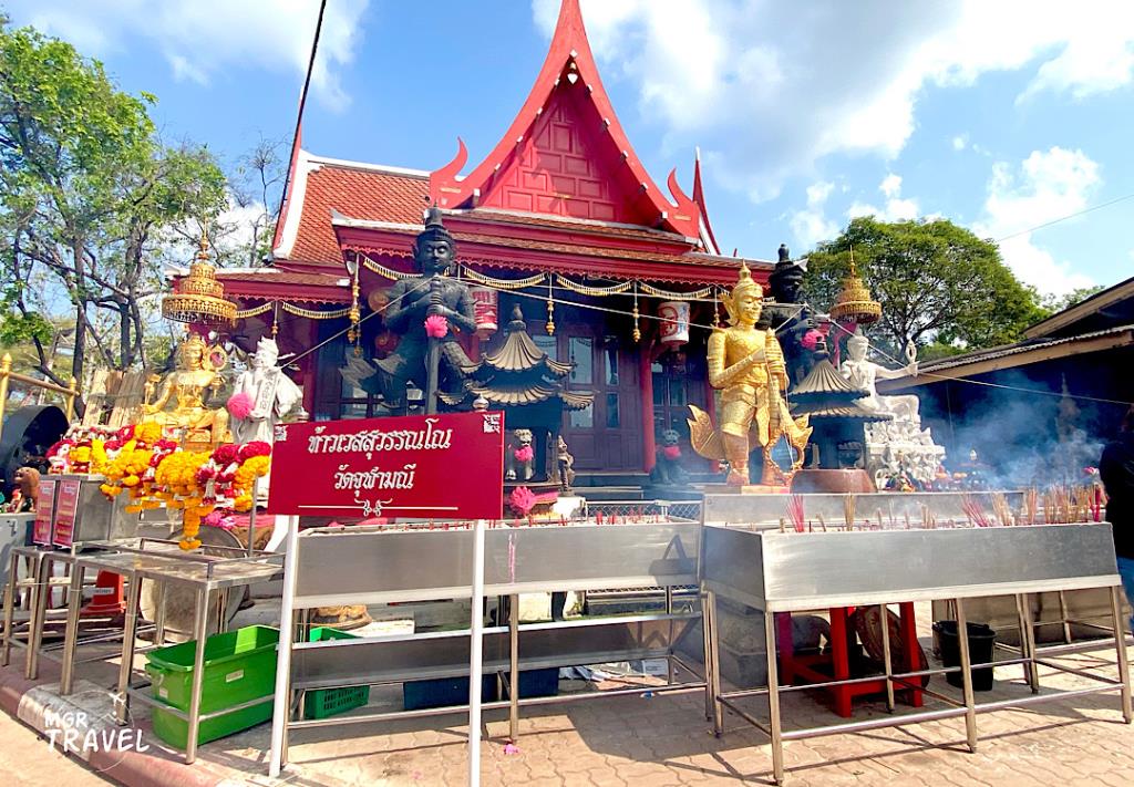 นอกจากนี้ยังสามารถป้องกันภูติผีปีศาจและเหล่าวิญญาณร้ายได้อีกด้วย โดยเฉพาะที่ วัดจุฬามณี ตำบลบางช้าง อำเภออัมพวา จังหวัดสมุทรสงคราม โดยที่มาของท้าวเวสสุวรรณ วัดจุฬามณี เกิดจาก หลวงพ่ออิฏฐ์ วัดจุฬามณี เจ้าอาวาสคนปัจจุบัน ที่เคยฝันเห็นท้าวสุวรรณพาเที่ยวชมยมโลก ซึ่งหลวงพ่ออิฏฐ์ ได้ตั้งสัจจะกับท่านว่าเมื่อกลับสู่โลกมนุษย์ จะตั้งรูปปั้นของท้าวเวสสุวรรณภายในวัด