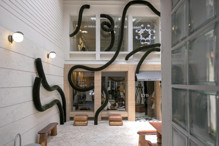 ทุกตารางนิ้วของคาเฟ่ถูกเปลี่ยนให้กลายเป็นโอเอซิสแห่งการผ่อนคลายจิตใจด้วยการออกแบบสไตล์ Contemporary Modern ที่ผสานพรรณไม้เลื้อยและกลิ่นหอมจากธรรมชาติเข้าไว้ด้วยกันอย่างละเมียดละไม ‘Erb x COF AND COW – Botanical Brought to Life’ ได้ร่วมกันรังสรรค์บรรยากาศใหม่ที่เต็มไปด้วยความเขียวขจีราวกับยกสวนลับมาไว้กลางเมือง ไม้เลื้อยเหล่านี้เปรียบเสมือนพลังธรรมชาติที่เบ่งบานอย่างอิสระเสรี แผ่ความสดชื่นไปทั่วทุกบริเวณคาเฟ่ สะท้อนให้เห็นถึงพลังของธรรมชาติที่สามารถเปลี่ยนแปลงพื้นที่ให้กลายเป็นโอเอซิสแห่งความผ่อนคลายได้ รวมถึงโทนสีเอิร์ธโทน วัสดุไม้ธรรมชาติ แสงไฟโทนอุ่น และดอกไม้ต้นไม้สไตล์ Botanical ถูกจัดวางอย่างพิถีพิถันให้โอบล้อมทุกมุมด้วยความรื่นรมย์ที่ให้ความรู้สึกใกล้ชิดธรรมชาติ ถูกนำมาใช้เพื่อปลุกเร้าความรู้สึกให้หลอมรวมเป็นหนึ่งเดียวไปกับกลิ่นหอมละมุนจาก Erb Aroma Inhaler Series ที่ไม่ได้เป็นเพียงแค่การตกแต่ง ไม่เพียงแต่สร้างความผ่อนคลายให้กับสายตา หากแต่เป็นการสื่อถึงช่วงเวลาแห่งการฟื้นฟูจิตใจ เตรียมประสาทสัมผัสทั้งหมดให้พร้อมเพื่อปลุกทุกพลังกายและใจให้ ‘ฟื้น ตื่น รื่นรมย์’ อย่างแท้จริงในทุกลมหายใจราวกับธรรมชาติกำลังเชื้อเชิญให้หลุดพ้นจากโลกที่แออัดวุ่นวายไปสู่ความสงบ สดชื่นและเบิกบานใจอย่างแท้จริง