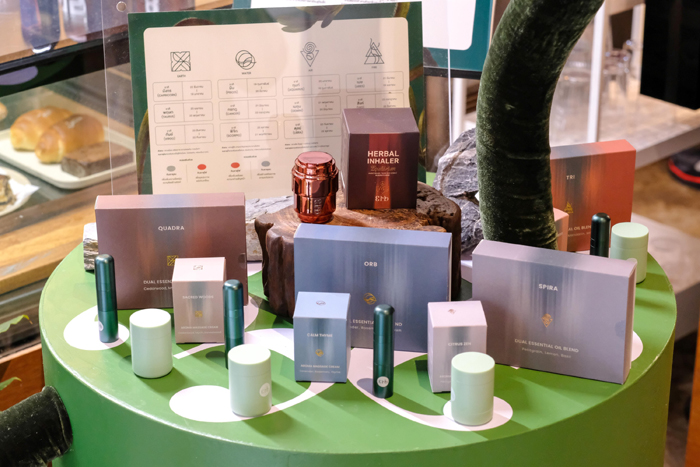 ในมุมพิเศษที่เปี่ยมด้วยกลิ่นอายแห่งการดูแลตัวเอง ‘Botanical Brought to Life Corner’ ถูกออกแบบให้เป็นพื้นที่แห่งการค้นพบตัวตนผ่านประสาทสัมผัส โดย Erb Aroma Inhaler Series คอลเลกชันเครื่องหอมไทยร่วมสมัยที่รังสรรค์ขึ้นจากแรงบันดาลใจของธาตุธรรมชาติทั้ง 4 ดิน น้ำ ลม ไฟ เพื่อปรับสมดุลจิตใจและเสริมพลังชีวิตอย่างลุ่มลึก ทุกกลิ่นถูกออกแบบอย่างประณีตให้เข้ากับอารมณ์ ความรู้สึกและจริตกลิ่นที่แตกต่าง โดยแบ่งออกเป็น 3 ซีรีส์ ได้แก่ Essential Oil Blend กลิ่น Spira (ธาตุลม), Quadra (ธาตุดิน), Orb (ธาตุน้ำ), Tri (ธาตุไฟ) ตามมาด้วย Aroma Massage Cream กลิ่น Citrus Zen (ธาตุลม), Zesty Cypress (ธาตุดิน), Calm Thyme (ธาตุน้ำ), Sacred Woods (ธาตุไฟ) และ Erb Equilibrium inhaler กลิ่น Premium scent ที่ไม่เพียงสะท้อนพลังของธรรมชาติ แต่ยังเชื้อเชิญให้ผู้มาเยือนได้เลือกกลิ่นที่ใช่สำหรับตัวเองได้อย่างอิสระและปล่อยใจให้ล่องลอยไปกับความผ่อนคลายได้ไม่มีที่สิ้นสุด