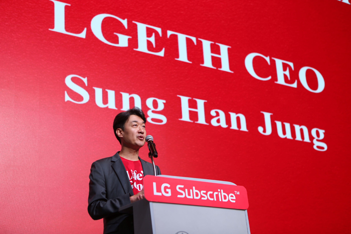 นายซองฮัน จอง ประธานกรรมการบริหาร บริษัท แอลจี อีเลคทรอนิคส์ (ประเทศไทย) จำกัด กล่าวว่า “LG Subscribe ประสบความสำเร็จเป็นอย่างมากในประเทศเกาหลีใต้ และเรากำลังเห็นแนวโน้มความสำเร็จเดียวกันนี้ในประเทศไทย โดยในช่วง 9 เดือนที่ผ่านมา เรามีผู้ใช้บริการ LG Subscribe มากกว่า 10,000 คน และตั้งเป้าจะเพิ่มเป็น 30,000 คนภายในสิ้นปีนี้ และความสำเร็จนี้เกิดขึ้นได้เพราะการร่วมแรงร่วมใจกันจากหลายฝ่าย โดยเฉพาะทีมตัวแทนขายอิสระ LG Subscribe (LG Subscribe Lifestyle Planner หรือ LP) และผู้จัดการตัวแทนขายอิสระ (LG Subscribe Lifestyle Sales Manager หรือ LSM) เราจึงจัดงาน LSM Award ขึ้นเพื่อแสดงความขอบคุณในตัวแทนทุกท่านที่ทุ่มเทส่งมอบบริการที่ดีที่สุดให้กับลูกค้า เราหวังว่าบริการของเราจะช่วยให้ผู้บริโภคมีชีวิตที่ดีขึ้นได้ ตามสโลแกน Life’s Good. ของแอลจี”