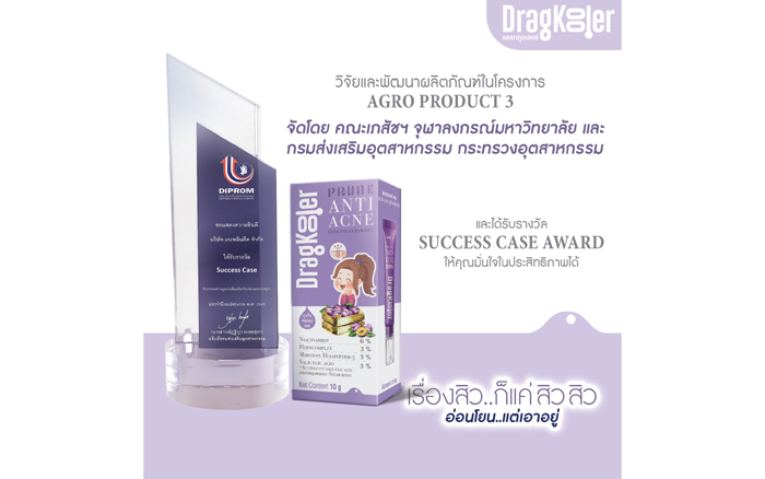 “แดรกคูลเลอร์” (Dragkooler) แบรนด์ไทยผู้เชี่ยวชาญนวัตกรรมจากสารสกัดธรรมชาติ เดินหน้าเปิดตัวไลน์ผลิตภัณฑ์ “Dragkooler Prune Anti Acne Cooling Clear Gel” เจลแต้มสิวลูกพรุน โดดเด่นด้วยนวัตกรรมใหม่ที่ได้รับรางวัล SUCCESS CASE AWARD จากโครงการ AGRO PRODUCT 3 โดย คณะเภสัชฯ จุฬาลงกรณ์มหาวิทยาลัย และกรมส่งเสริมอุตสาหกรรม กระทรวงอุตสาหกรรม จบทุกปัญหาสิวอย่างตรงจุดด้วยเนื้อ เจลบางเบาซึมซาบเร็ว ใช้คู่กับการแต่งหน้าได้ไม่ด่างไม่เป็นคราบ มั่นใจได้ทั้งในเรื่องประสิทธิภาพและความอ่อนโยน ตอบโจทย์ผู้ใช้ทุกช่วงวัย รวมถึงผู้ที่มีผิวแพ้ง่าย