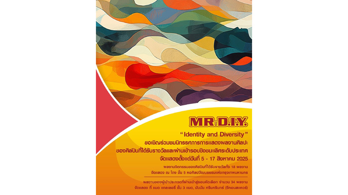 มิสเตอร์.ดี.ไอ.วาย. ชวนคนรักงานศิลปะ สำรวจมุมมองของความต่าง ตัวตน ผู้คนและสังคม ผ่านนิทรรศการ “อัตลักษณ์และความหลากหลาย (Identity and Diversity)” ซึ่งเป็นการจัดแสดงผลงานของผู้ชนะ และผู้ผ่านเข้ารอบชิงชนะเลิศระดับประเทศ จากกการประกวดจิตรกรรมร่วมสมัยมิสเตอร์. ดี.ไอ.วาย. ประจำปี 2568 ตั้งแต่วันที่ 5 – 17 สิงหาคม 2568 โดยผลงานผู้ชนะจัดแสดงที่หอศิลปวัฒนธรรมแห่งกรุงเทพมหานคร และผู้ที่ผ่านเข้ารอบชิงชนะเลิศระดับประเทศจัดแสดงที่ มันมัน แกลอรี่ ศรีนครินทร์